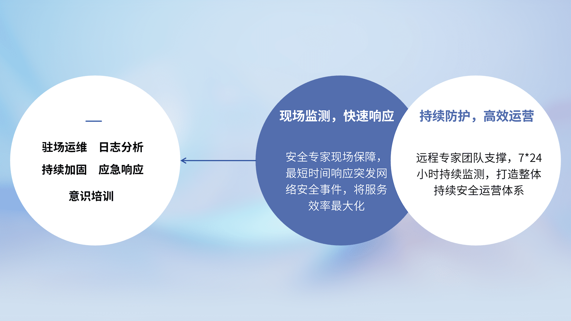 针对客户行业特性,,,提供专属的一站式安全管理服务,,,,帮助客户全面感知网络空间威胁,,通过安全专家的线上、、、线下防护支持,,实现风险闭环,,,,将安全保障常态化,,,,为客户打造常态化安全运维运营服务。。